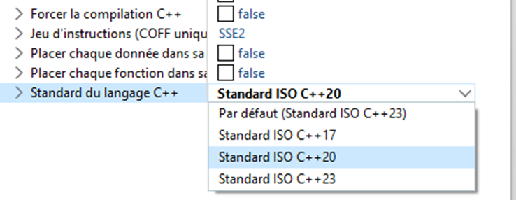 Le support de C++20 et C++23 est presque complet. (Cf. doc statut compilateur & LLVM lib C++ ICI ) alors que la version précédente du compilateur ne supportait que C++17